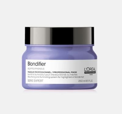 Маска для сияния оттенков блонд L'Oreal Professionnel Blondifier Masque. Благодаря полифенолам, содержащимся в экстракте ягоды ассаи, маска Blondifier питает и смягчает волосы по всей длине. Сохраняет сияние и яркость блонда. Идеальна для профессионального ухода за окрашенными, осветленными и мелированными волосами. Способ применения: Нанесите на чистые влажные волосы, оставьте на 3-5 мин., смойте водой. Состав: Aqua / Water, Cetearyl Alcohol, Behentrimonium Chloride, Cetylesters, Cocos Nucifera Oil / Coconut Oil, Isopropyl Alcohol, Benzoic Acid, Pentaerythrityl Tetra-Di-T-Butyl Hydroxyhydrocinnamate, Benzyl Salicylate, Benzyl Alcohol, Linalool, Limonene, Sodium Hydroxide, Hydroxycitronellal, Citronellol, 2-Oleamido-1,3- Octadecanediol, Tocopherol, Alpha-Isomethyl Ionone, Euterpe Oleracea Fruit Extract, Maltodextrin, Parfum / Fragrance. C220483/1.