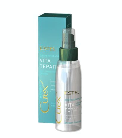 ESTEL CUREX THERAPY Эликсир красоты «Vita-терапия» для всех типов волос мгновенно преображает волосы, придает им ухоженный вид. Продукт содержит аргановое масло и витамин Е, обеспечивающие увлажнение, питание, мягкость и блеск волос, восстанавливает и укрепляет поврежденные волосы, облегчает расчесывание.