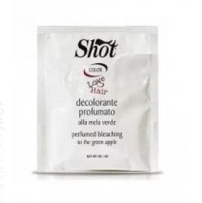Shot Ambition Tech Bleaching Powder - Осветляющий порошок (зеленое яблоко) 25 гр. Осветляющий порошок (зеленое яблоко) Ambition colour Bleaching Powder No Ammonia. Уникальная формула блондирующего порошка Shot содержит голубые и фиолетовые пигменты, которые помогают устранить нежелательную желтизну и оранжевые оттенки при осветлении. Продукт может быть использован при любой технике осветления. Эффективный препарат, обладающий мягким воздействием и обеспечивающий осветление волос на 7 уровней. Непылящий порошок имеет приятный аромат зеленого яблока и подходит для волос любого типа. Результат применения: - осветляющий порошок, созданный на основе высококачественных окислительных агентов, которые гарантируют превосходное осветление, как натуральных так и ранее окрашенных волос а также производных силикона, которые защищают волосы в процессе окрашивания. Способ применения: - блондирующий порошок смешать с Кремовой окисляющей эмульсией Shot в соотношении 1:2. - выбор типа эмульсии зависит от того, какая степень осветления предполагается в результате процедуры.